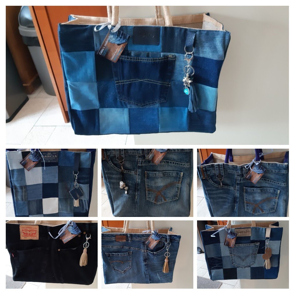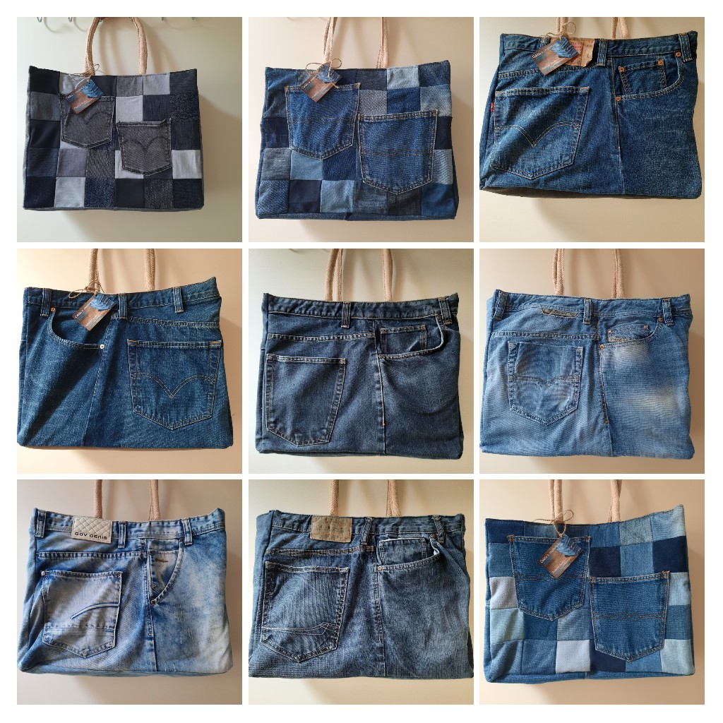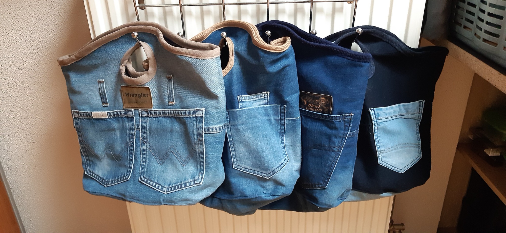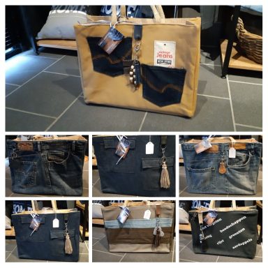 Enkele voorbeelden van wat er allemaal mogelijk is voor spijkerstof tassen en accessoires.